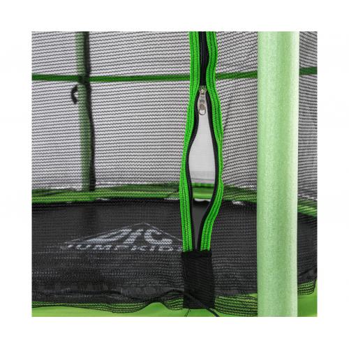 Вход в батут открывается и закрывается на молнию, бегунок размещен снаружи, чтобы ребенок не смог открыть самостоятельно.
