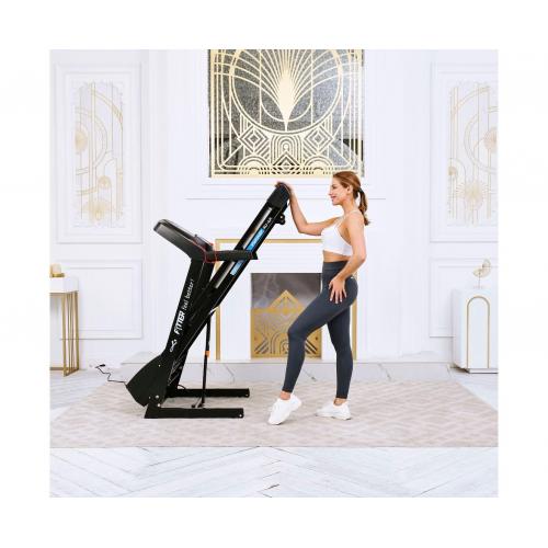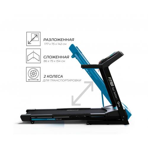 - Беговая дорожка имеет складную конструкцию, что позволяет быстро и легко сложить ее для хранения. Гидроцилиндр позволяет сложить Fytter 6X одним движением, а раскладывается он с одного толчка.