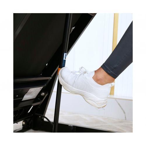 - Для безопасности и комфорта тренировки на боках бегового полотна установлены нескользящие боковые подставки. Система демпфирования снижает вибрацию и нагрузку на суставы, поглощая удары благодаря эластомерам и гелевым подушкам.