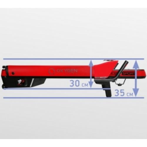 OXYGEN FITNESS™ M-Concept - это принципиально иной подход к компактным беговым дорожкам. Да, возможно, толщина здесь немного больше, чем в ультратонких аналогах. Но это настоящая, полноценная беговая дорожка. На ней можно комфортно и эффективно заниматься, на ней можно достигать реальных результатов в улучшении своей физической формы и, наконец, она безопасна. Итак, давайте посмотрим на характеристики. В M-concept Sport установлен надежный двигатель производства японской Fuji Electric, его мощность составляет 2.25 л.с. в режиме постоянной эксплуатации (или 4.05 л.с. при пиковых нагрузках). Именно мощный двигатель позволяет разогнать полотно до 14 км./ч. Важно, что размер полотна просто огромный для такого компактного тренажера - рабочая беговая поверхность составляет 130 см. в длину и 48 см. в ширину. По второму параметру дорожка вообще приближается к клубному уровню. Более того, в M-Concept Sport есть даже автоматическая регулировка угла наклона от 0 до 12% - за счет чего значительно увеличивается вариативность тренировок. Еще одна ахиллесова пята ультракомпактов - амортизация. По факту ее нет - как бы производитель не доказывал обратное. При такой тонкой раме поставить полноценную систему амортизации невозможно. В серии M-Concept, за счет большей толщины рамы, вопрос решен радикально - здесь стоят сразу 6 профессиональных эластомеров VCS™. Это именно та амортизация, которая устанавливается на профессиональные беговые дорожки.