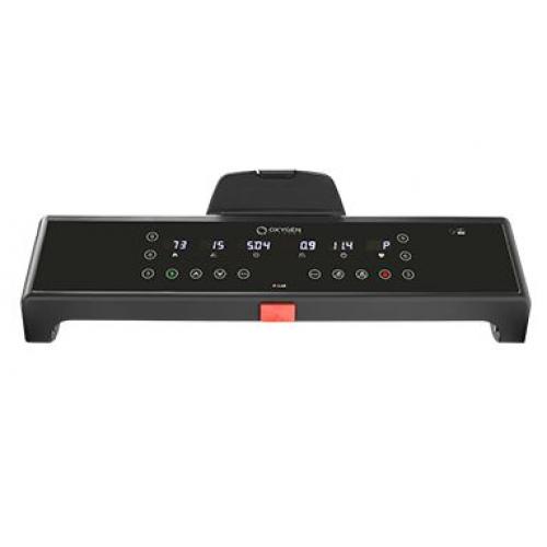 Модель OXYGEN T-COMPACT B имеет весь необходимый набор для проведения эффективных тренировок. Информативная консоль с 6-ю яркими, буквенно-цифровыми LCD-дисплеями, отображает следующие показатели: калории, наклон, время, расстояние, скорость, пульс. Все показатели изменяются при помощи сенсорных кнопок. Во второй модели серии T-COMPACT встроен высокоточный беспроводной приемник для определения пульса и просто комфортной тренировки. Для определения точных показателей пульса рекомендуется использовать телеметрический ремень-передатчик Polar T34. В памяти консоли содержится 19 программ, 15 из которых помогут пользователям начать тренировочный процесс в независимости от их уровня подготовки (быстрая ходьба, легкий бег, аэробная тренировка, темповая тренировка, пересеченная местность, интервальный бег, холмы, гора, сжигание жира, фартлек, выносливость, снижение веса, развитие скорости, долина, бег трусцой). Помимо предустановленных программ, можно воспользоваться регулируемым ручным режимом. Есть и 3 пульсозависимые программы. Подставка для гаджетов имеет специальный регулятор, необходимый для фиксации устройств различных размеров.