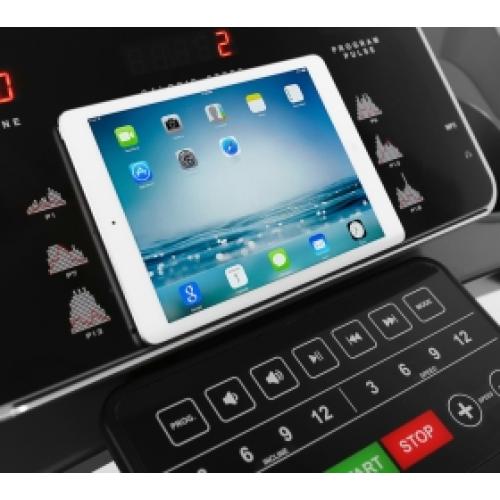 Мультимедийная компонента представлена динамиками мощностью 5 Ватт с разъемами AUX и USB для подключения мобильных устройств и воспроизведения через них аудио-файлов. AUX имеет вход IN и выход OUT. В первом случае можно подключить смартфон, планшет или MP3-плеер и вывести на динамики аудио файлы. Во второй разъем можно подключить наушники. Через USB вход также можно подсоединить флешку для воспроизведения аудио. Еще одна полезная функция - через USB вход можно заряжать мобильные устройства. Для удобства размещения смартфона или планшета предусмотрена подставка. Дорожка имеет транспортировочные ролики и компенсаторы неровностей пола.