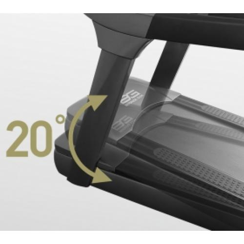 Беговая дорожка BRONZE GYM T1200 PRO относится к классу тяжелых коммерческих тренажеров и полностью готова к эксплуатации в режиме 24*7. Рама выполнена из особопрочного стального профиля - нетто вес дорожки составляет почти четверть тонны (242 кг.). Максимальный вес пользователя фактически не имеет ограничений и заявлен как 220 кг. Размер полотна максимальный из всех существующих беговых дорожек - длина беговой зоны составляет невероятные 170 см. при ширине 58 см. Супермощный надежный двигатель 5.5. л.с. переменного тока (8.8 л.с. в режиме пиковой мощности) от японской Fuji Electric разгоняет полотно до 25 км./ч. - это тоже максимальный показатель из возможных. Усиленная парафинированная дека толщиной 30 мм. имеет специальные сертификаты технических и экологических директив EO/ROHS (ЕС) и 4 STAR GRADE F (Япония)). Мультиабсорбирующая динамическая система амортизации на основе изменяемых эластомеров antiSHOCKwave™ имеет 2 зоны жесткости. Передняя и центральная часть беговой зоны (то есть там, где идет основная ударная нагрузка на ноги) настроены на более мягкую амортизацию. Задняя часть, в зоне отрыва стопы, - на более жесткую. Отличительной особенностью дорожки является система автоматического смазывания деки - таким образом, обслуживание тренажера сведено практически к нулю.