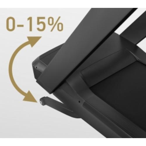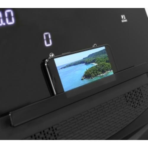 Модель оборудована набором самых востребованных опций, необходимых для достижения тренировочных целей. На T900M установлен двигатель с мощностью 4 л.с. В режиме пиковых нагрузок этот показатель увеличивается до 6 л.с. По своим остальным характеристикам Bronze Gym T900M также соответствует заявленному уровню - максимальная скорость 22 км/ч, угол наклона от 0 до 15%, беговое полотно профессионального уровня толщиной 2.2 мм и размером беговой зоны 155*56 cм. Амортизационная система оборудования представлена мультиабсорбирующим динамическим элементом на основе 6 эластомеров, расположенных по периметру полотна.