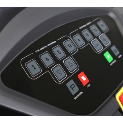 Тренировочный компьютер оборудован профессиональным LED-дисплеем с точечной матрицей. Основной экран дополняют 6 небольших буквенно-цифровых LED-дисплея. На мониторах отображаются следующие данные: программный профиль, время, скорость, дистанция, калории, пульс, угол наклона. Все клавиши и дисплеи оснащены белой подсветкой, а надписи русифицированы. В число самих программ входят 36 режимов, направленных на решение самого широкого спектра задач – от развития силы до снижения веса. Помимо предустановленных программ, можно воспользоваться самостоятельно регулируемым ручным режимом. Здесь также есть и 3 пользовательские программы.