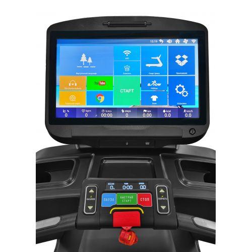 Регулировка наклона от -3 до 18 градусов предоставляет широкий выбор нагрузки для интервальных тренировок. Модель имеет одно из самых больших беговых полотен в классе 1630 х 600 мм., что создает максимальный комфорт и безопасность тренировок. Интуитивно понятный, информативный TFT HD Touch-Screen дисплей c диагональю 21,5” и безграничными мультимедийными возможностями делает тренировки захватывающими, при этом он удобен и прост в управлении. Клавиши быстрого выбора скорости и угла наклона, а также широкая вариация программ тренировки значительно упрощают настройки тренировочного процесса.