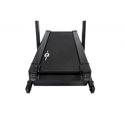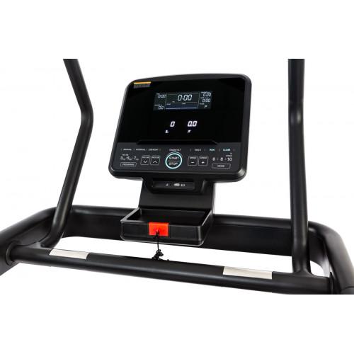 Модель оснащена транспортировочными колесами. Усиленная MFD дека с системой эластомеров и антискользящие боковые направляющие обеспечивают безопасность и высокий комфорт тренировок, снижая ударную нагрузку на суставы и позвоночник. Интуитивно понятный информативный LED дисплей позволяет легко и удобно управлять беговой дорожкой. На экране в отдельных окнах можно следить за временем, пройденной дистанцией, потраченными калориями, скоростью и пульсом.