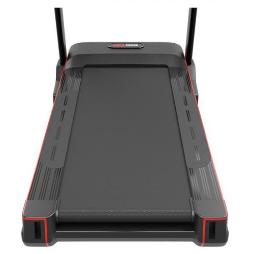 - Просторное беговое полотно размером 51 х 150 см является одним из самых больших в своем классе, обеспечивая комфортные условия для занятий бегом людям любого роста и комплекции.