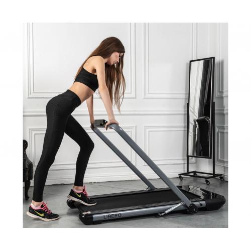 В дизайне дорожки Libero основные элементы конструкции выполнены в стильном серебристом цвете, который удачно контрастирует с чёрным беговым полотном. Такой тренажёр легко впишется в любой интерьер.