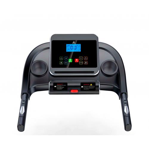 Консоль отображает скорость, время, расстояние, калории и пульс. Дорожка предусмотрена 12 программами тренировки, 3 ручными режимами и режимом тестирования. Скорость регулируется с помощью консоли и на поручнях, также на поручнях располагаются кнопки START/STOP. На панели консоли располагаются 2 кармана для бутылки и подставка под планшет.