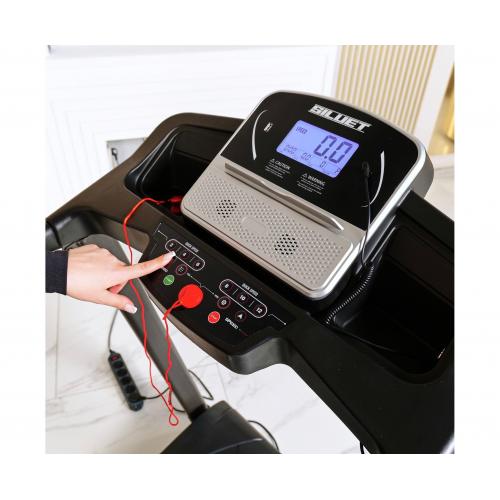 Беговая дорожка DFC SILUET FITNESS T0003S — идеальный выбор для тех, кто хочет поддерживать физическую форму и заботиться о своём здоровье. Благодаря мощному двигателю постоянного тока (2,5 л/с пиковая) и возможности регулировки угла наклона в 3-х положениях вы сможете настроить тренировку под свои потребности и предпочтения.