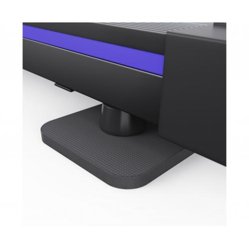 - Беговое полотно размером 93 х 36 см с толщиной 1,4 мм и дека толщиной 12 мм обеспечивает комфортное, стабильное и безопасное пространство для свободного движения во время тренировки. В комплект входят 4 антискользящие подкладки, обеспечивающие дополнительную защиту покрытия пола и устойчивость тренажёра.