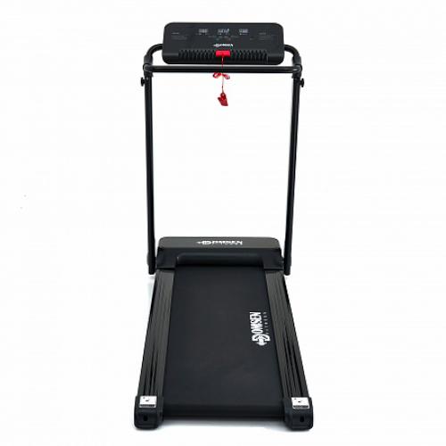 На дорожке установлен надежный двигатель компании Leeson с номинальной мощностью 1,7 л/с способный разгонять полотно до скорости 12 км/ч, в совокупности с усиленной рамой тренажер выдерживает пользователей до 120 кг.