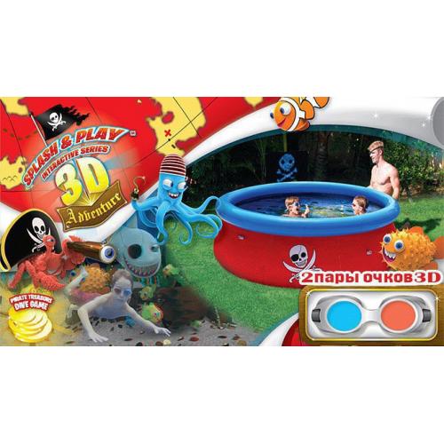 Удивительный мир подводных приключений сделает отдых детей незабываемо ярким и интересным. На внутренней поверхности бортов бассейна нанесен рисунок с изображением жителей подводного мира по 3D технологии. В комплекте с бассейном идут 2 пары 3D очков, которые помогут полностью погрузиться в виртуальный океан.