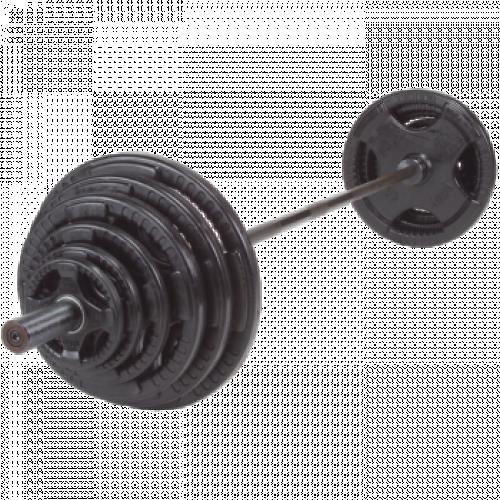 • Включает 1 олимпийский хромированный гриф, 2 олимпийских пружинных замка и набор обрезиненных дисков с хватами