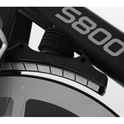 BRONZE GYM S800 LC - полупрофессиональный спин-байк для тренировок в домашних условиях, а также небольших классах группового тренинга. Все узлы и детали проверены многолетним опытом эксплуатации в различных условиях по всему миру. В первую очередь в спин-байке S800 LC стоит выделить великолепную биомеханику. В основе находится ременной привод с преднатяжителем и магнитной системой нагружения. Последняя является самой прогрессивной разработкой в биомеханике спин-байков и обеспечивает самую высокую степень эффективности и комфорта. Целых 8 магнитов, выполняющих функцию колодок, действуют по бесконтактному принципу. Это позволяет педалировать на любых скоростях с любым уровнем нагрузки абсолютно равномерно. Здесь в принципе отсутствуют провалы нагрузки во время кручения. Усиливает великолепный биомеханический эффект маховик весом 22 кг., выполненный по уникальной технологии с использованием алюминиевого обода. Его отличие - абсолютно ровный диаметр и равномерное распределение веса (плотности) по своей форме. Это еще один плюс в копилку ровного плавного хода и самого высокого коэффициента инерции. BRONZE GYM S800 LC отлично проходит так называемый "Тест на 6 часов" (проверка равномерности распределения нагрузки при педалировании, проводится в положении стоя; как правило, большинство спин-байков "проваливаются" (скорость увеличивается, нагрузка падает) при движении шатуна из верхнего положения в нижнее).