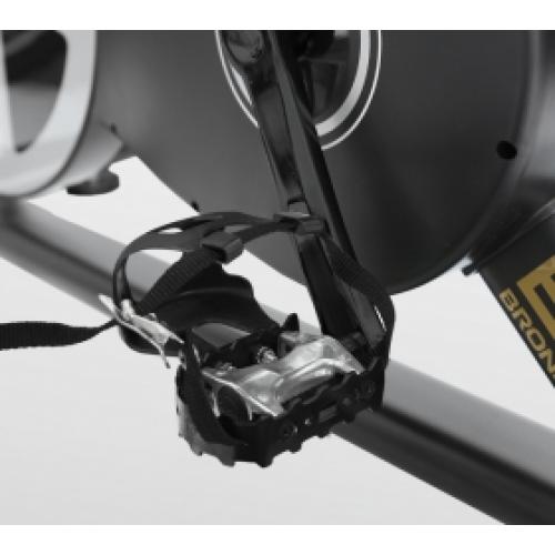 К числу других преимуществ BRONZE GYM S800 LC относятся быстро настраиваемые компенсаторы неровностей пола, износостойкие полиуретановые транспортировочные ролики и держатель для бутылки. Многопозиционный руль с подлокотниками, полностью закрытый от влаги прорезиненной полиуретановой защитой, дает возможность принять спортивное "шоссейное" положение. Помимо всего прочего, здесь стоят педали, выполненные по технологии "Toe clip" (система рамок и ремешков на педали для крепления ноги).