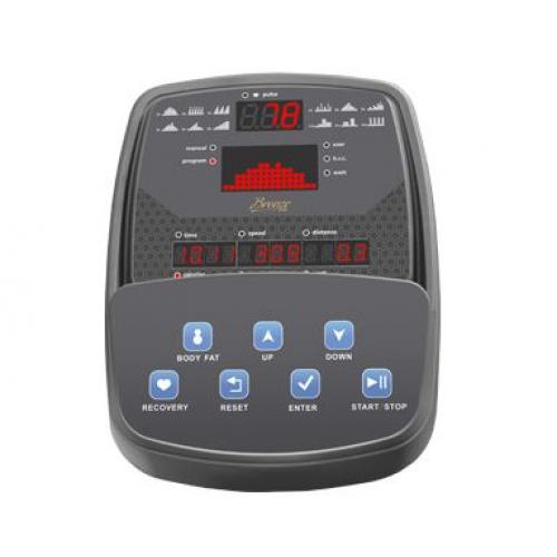 - Показания консоли профиль, время, дистанция, скорость, калории, обороты в мин., пульс, Ватты, фитнес-тест (Recovery), жироанализатор (Body Fat)