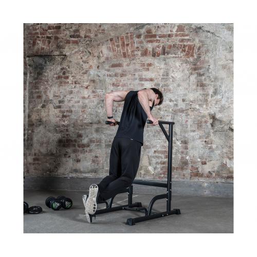 Стойка для отжиманий на брусьях. Предназначена для выполнения упражнений на развитие грудных мышц и трицепса. Брусья имеют нескользящие рукоятки по всей длине.