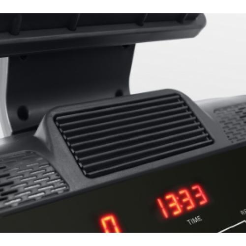 - Показания консоли время, скорость, дистанция, уровень нагрузки, уровень наклона, калории, пульс, темп, Ватт, фитнес тест, жироанализатор