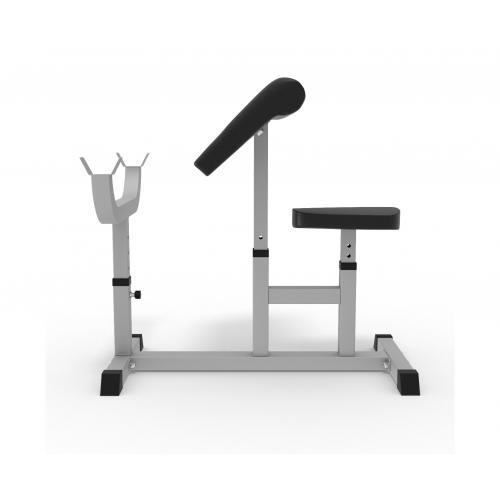 Сиденье, парта для бицепса и стойки под штангу регулируются по высоте.