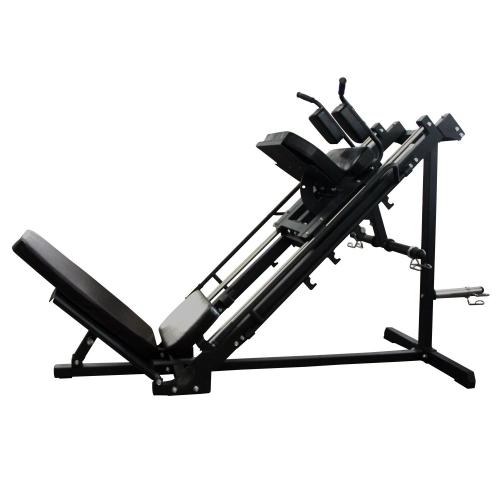 Тренажер со свободными весами позволяет выполнять целевые тренировки мышц ног: жим ногами, гак-приседания, упражениния для икроножных мышц (calf raises).