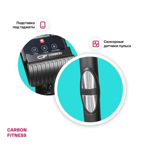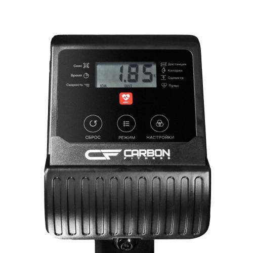 - CARBON FITNESS E40 оснащен LCD консолью, на которой отображаются все важные параметры: время, скорость, дистанция, калории и пульс. Тренажер предлагает ручной режим тренировок, что позволяет легко адаптировать занятия под ваши индивидуальные цели. Также предусмотрена подставка для планшета или смартфона, что позволяет оставаться на связи во время тренировки.
