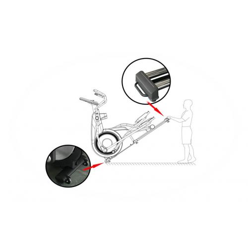 В основании тренажёра расположены колёсики и удобная ручка. Это позволяет легко транспортировать его до и после тренировки или если нужно убрать на время.