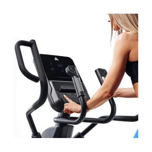 Модель оснащена электромагнитной системой регулировки с электрическим переключением нагрузки. Есть 32 уровня сложности, которые можно менять даже во время занятия с панели управления. Изменение уровня нагрузки мягкое, что безопасно и комфортно для пользователя. Тренажёр имеет дополнительные поручни, благодаря чему можно менять угол наклона для повышения эффективности тренировки. Регулировать наклон можно непосредственно с консоли управления.