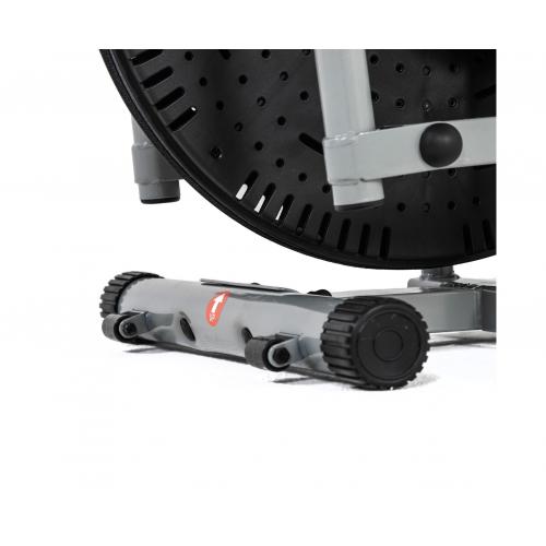 Тренажер имеет ременную систему нагружения с ручной регулировкой с помощью рукоятки на корпусе тренажера - чем сильнее затянут ремень, тем тяжелее крутить педали.