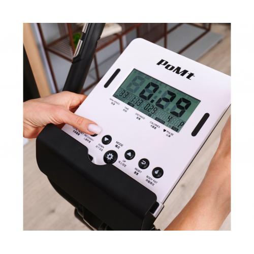 - Тренажёр оснащён монохромным LCD-дисплеем, который отображает время, скорость, дистанцию, калории, пульс, восстановление, обороты в минуту, а также предоставляет доступ к 12 программам и пользовательской программе с возможностью настройки. Измерение пульса осуществляется с помощью встроенных сенсорных датчиков на поручнях. Тренажёр также подключается к приложению i-console через Bluetooth, что делает ваши тренировки эффективнее и разнообразнее.