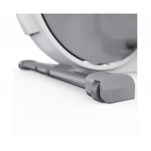 - Одним из ключевых преимуществ тренажёра является его складная конструкция. Это особенно удобно для использования в квартирах или небольших помещениях. Такой компактный эллиптический тренажёр впишется даже в ограниченное пространство. Для удобного перемещения предусмотрены транспортировочные ролики, а компенсаторы пола позволяют установить тренажёр ровно даже на неровной поверхности.