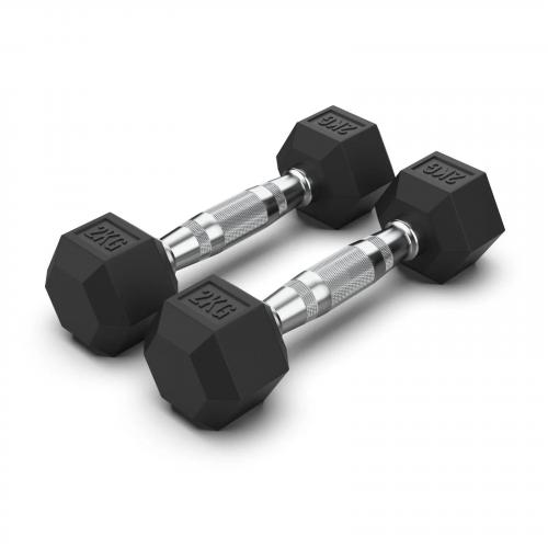 Гантель гексагональная 2 кг обрезиненная, хромированная ручка