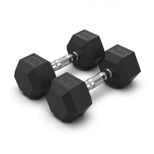 Гантель гексагональная 10 кг обрезиненная, хромированная ручка