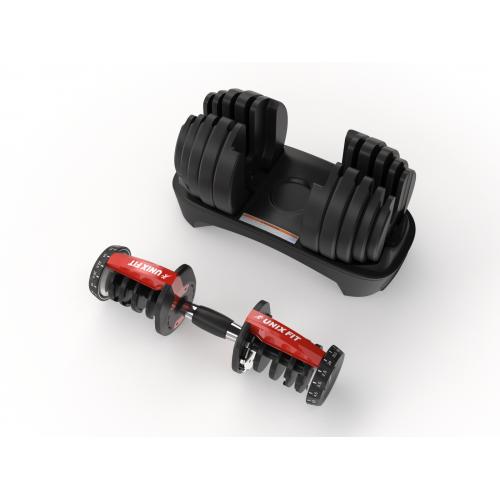 Гантель со ступенчатой регулировкой UNIXFIT весом 24 килограмма имеет 15 уровней нагрузки (от 2,5 до 24 кг). Современная конструкция позволяет изменять вес гантели за считанные секунды. Благодаря специальной системе замков при повороте индикатора веса фрагменты гантели, соответствующие выбранному весу, надежно крепятся на грифе. Использование данной системы позволит существенно сократить время, затрачиваемое на изменение веса снаряда во время тренировки.