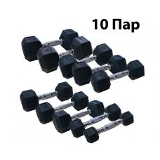 Набор гексагональных обрезиненных гантель от 1 до 10 кг (10 пар) с шагом 1 кг
