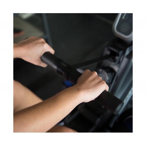 Консоль работает от двух батареек типа ААА и оснащена откидным дисплеем, который позволяет контролировать параметры тренировки во время занятий. Кроме того, держатель для смартфона позволяет следить за любимыми программами или видео во время выполнения упражнений.