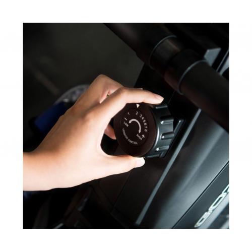 Маховик на 3 кг обеспечивает плавную и тихую тренировку, а магнитная система нагрузки позволяет выбрать один из 8 уровней интенсивности. Компьютер отслеживает время, дистанцию, сожженные калории, текущую скорость, и количество оборотов. Максимальный вес пользователя может достигать 110 кг, что делает тренажёр подходящим для большинства людей.