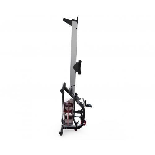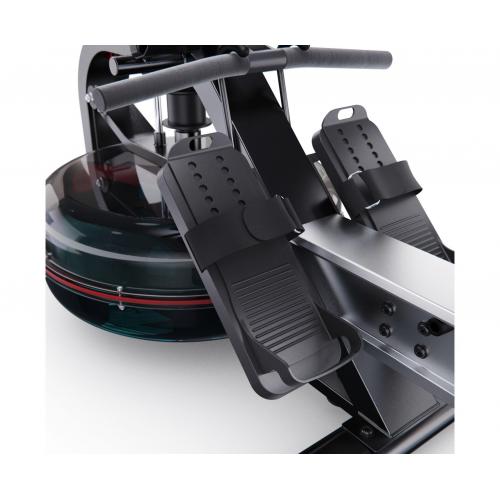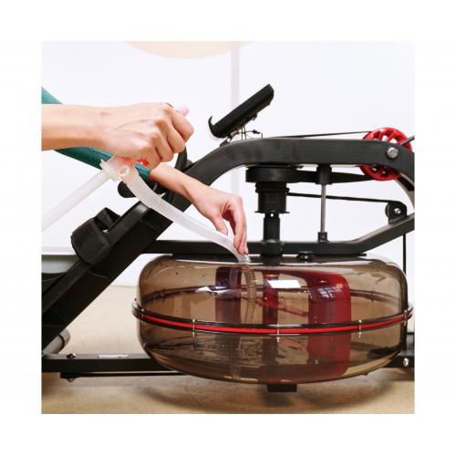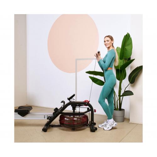 - Кардиотренажёр использует водную систему нагрузки, что обеспечивает плавность хода и бесшумную работу. Транспортировочные ролики облегчают перемещение тренажёра при необходимости.