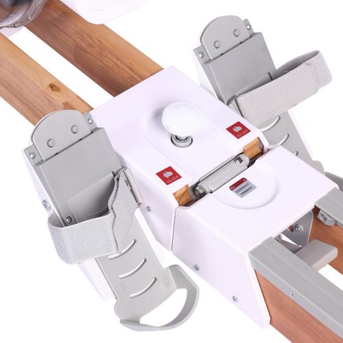 - Водная система нагрузки обеспечивает максимально реалистичное и плавное сопротивление, имитирующее ощущения от академической гребли. Уровень интенсивности регулируется напрямую за счет объема воды в баке, что позволяет точно настроить нагрузку под ваши цели и уровень подготовки.