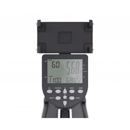 - Тренажёр оснащён монохромным LCD-дисплеем, отображающим ключевые показатели тренировки — калории, дистанцию, скорость и общее количество гребков. Для расширения функционала предусмотрено подключение по Bluetooth к приложениям FITLOG и KINOMAP, что позволяет отслеживать прогресс и делать занятия более увлекательными. В комплект входят две батарейки типа AA, необходимые для работы дисплея.