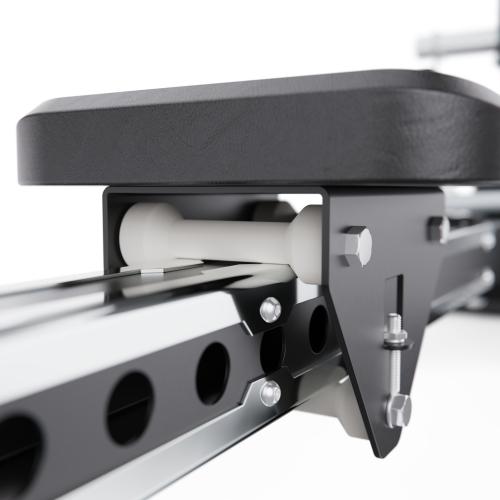 - Тренажёр рассчитан на пользователей весом до 250 кг, что делает его универсальным решением для спортсменов разного уровня подготовки. Прочная стальная рама с профилем 75 х 75 х 3 мм обеспечивает высокую устойчивость и долговечность конструкции. Слайд длиной 104,5 см обеспечивает естественную амплитуду движений и комфорт при каждом гребке.