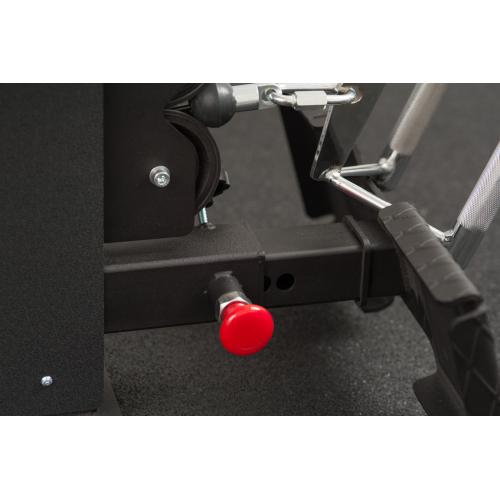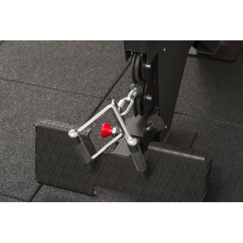 Упор для ступней горизонтальной тяги имеет 7 рабочих положений для регулировки длины вылета и дополнительно прижимается винтовым барашком, чтобы исключить неприятный люфт во время выполнения упражнения.