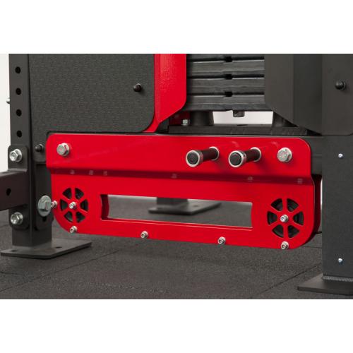 Специальные зацепы для тренировки с резиновыми петлями. Кроме плиток грузоблочного стека общим весом 100 кг Вы можете устанавливать на них дополнительно резиновые петли и с их помощью увеличивать нагрузку.