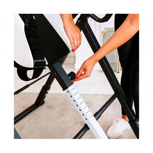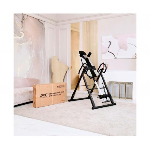- Инверсионный стол DFC IT6312B-W — это удобный и эффективный тренажёр для улучшения осанки, укрепления связок и улучшения кровообращения. Он имеет спинку белого цвета с валиками под голову и съёмную подушку под поясницу для дополнительного комфорта. Страховочный ремень входит в комплект, а валики оснащены подпяточниками для удобства использования.