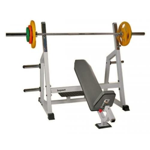 Скамья наклонная со стойками для жима штанги с платформой для страхующего