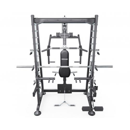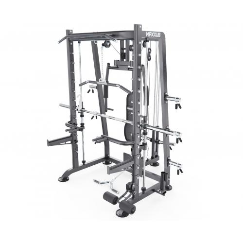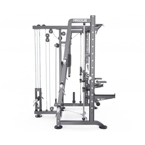 - Машина Смита MAXXUS GSMX-600019 — полноценная замена спортзалу у вас дома! Она сочетает в себе машину Смита, силовую станцию, мультипозиционный турник и функциональную раму, позволяя прорабатывать все группы мышц в одном комплексе.
