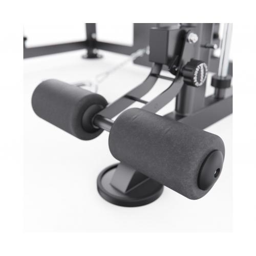 - Каркас мультистанции изготовлен из высокопрочной стали (профиль 50 х 100 х 2 мм и 50 х 70 х 1,5 мм), что обеспечивает долговечность и устойчивость конструкции даже при максимальных нагрузках. Прочная спинка 83,5 х 33 х 5,5 см обеспечивает комфорт во время выполнения упражнений. Компактные габариты для своего класса (216,5 х 186 х 213,5 см) позволяют использовать мультистанцию даже в ограниченном пространстве.