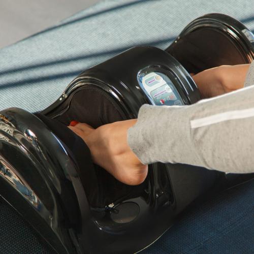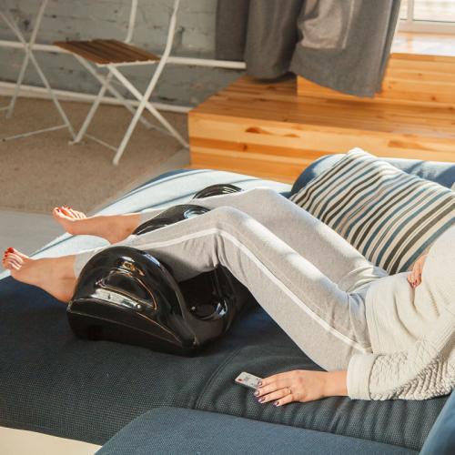 Тонизирует мышцы ног, эффективно снимает усталость. Имеет возможность ручного выбора интенсивности и направления вращения массажных роликов.