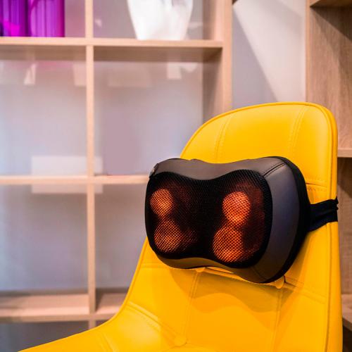 Описание: Беспроводная массажная подушка с 4 массажными роликами. Зарядки хватает на 2 часа беспрерывной работы. Подходит для массажа шеи, спины, поясницы, живота, бедер, ног.